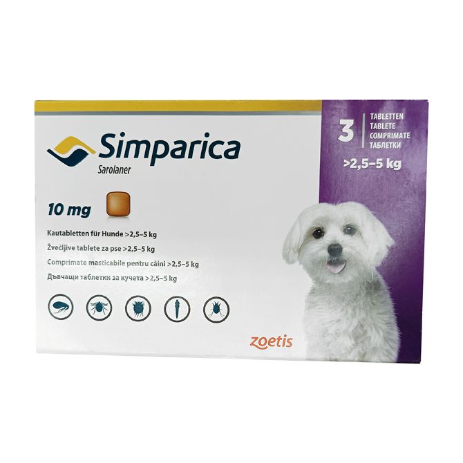 Симпарика для собак 10мг 2,5-5кг ГЕРМАНИЯ! таб. для пер. пр. N3 в Перми и области